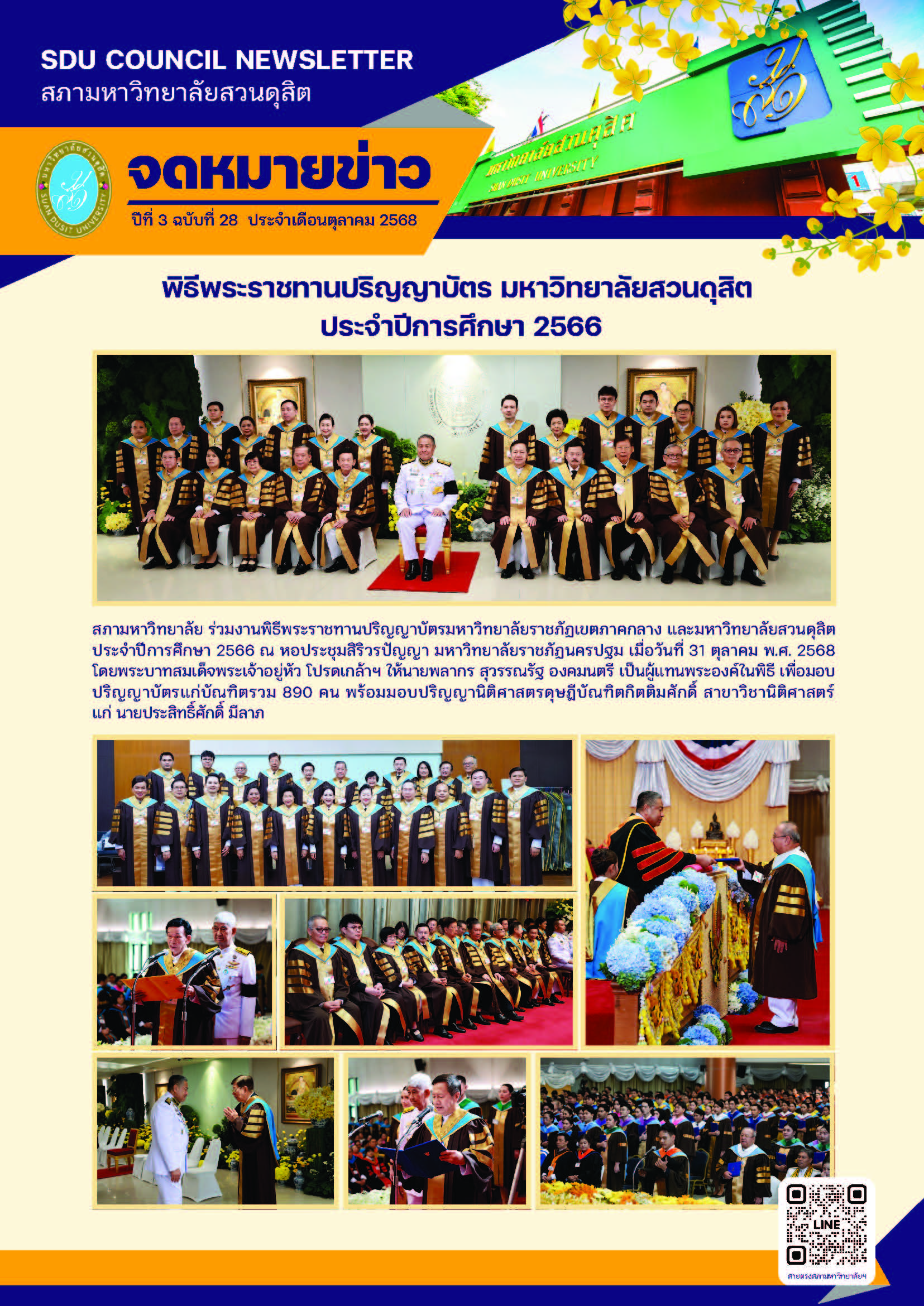 คณะกรรมการสภามหาวิทยาลัยเข้าร่วมพิธีพระราชทานปริญญาบัตรแก่บัณฑิตมหาวิทยาลัยสวนดุสิต ประจำปี 2568 (ปีการศึกษา 2566) เมื่อวันที่ 31 ตุลาคม 2568 November 7, 2025 อ่านเพิ่มเติม