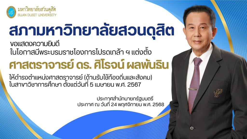 การประชุมสภามหาวิทยาลัยสวนดุสิต ครั้งที่ 10(26)/2568 เมื่อวันที่ 24 ตุลาคม 2568 October 24, 2025 อ่านเพิ่มเติม