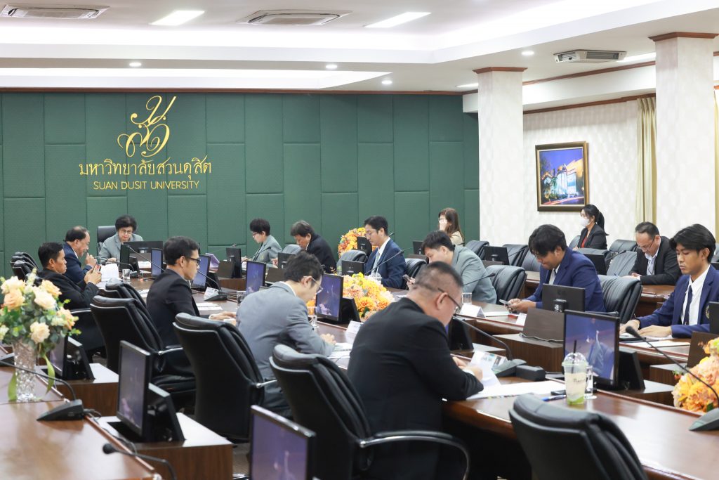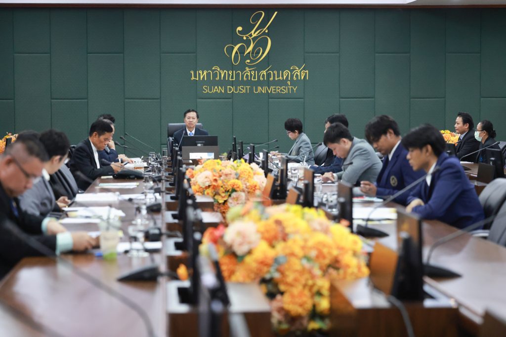 ผู้ช่วยศาสตราจารย์ ดร.พิทักษ์ จันทร์เจริญ อธิการบดีมหาวิทยาลัยสวนดุสิต พบคณะกรรมการส่งเสริมกิจการมหาวิทยาลัย พร้อมให้ข้อเสนอแนะแนวทางการดำเนินงาน ในการประชุมคณะกรรมการส่งเสริมกิจการมหาวิทยาลัยสวนดุสิต โดยมี ผู้ช่วยศาสตราจารย์ เฉิดฉิน สุกปลั่ง เป็นประธานการประชุมฯโดยมีเรื่องนำเสนอเพื่อพิจารณา การพิจารณาจัดทำเหรียญสมเด็จพระมหารัชมงคลมุนี (ธงชัย ธมฺมธโช) และ (ร่าง) สรุปผลการดำเนินงานปึงบประมาณ พ.ศ. 2568 ในการนี้ คณะกรรมการส่งเสริมกิจการมหาวิทยาลัย ร่วมแสดงความยินดีแด่ ผู้ช่วยศาสตราจารย์ ดร.พิทักษ์ จันทร์เจริญ ที่มีพระบรมราชโองการโปรดเกล้าโปรดกระหม่อมแต่งตั้งให้ดำรงตำแหน่งอธิการบดี ณ ห้องประชุมลำพอง 2 มหาวิทยาลัยสวนดุสิต