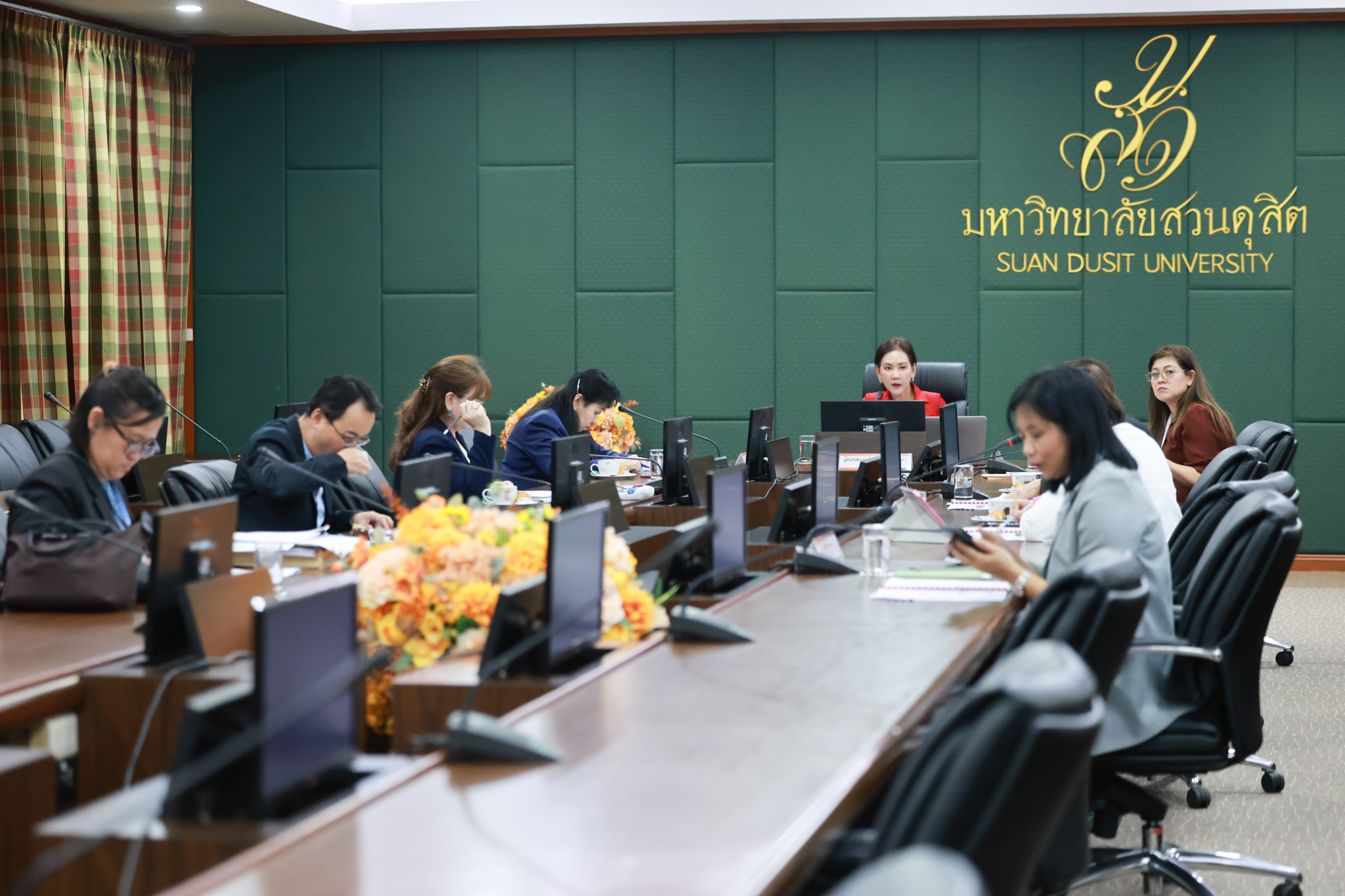 ผู้ช่วยศาสตราจารย์ ดร.พรชณิตว์ แก้วเนตร รองอธิการบดีฝ่ายวิชาการและกิจการต่างประเทศ มหาวิทยาลัยสวนดุสิต เป็นประธานการประชุมคณะกรรมการสรรหาคณบดีบัณฑิตวิทยาลัย ครั้งที่ 1/2568 โดยมีเรื่องนำเสนอเพื่อพิจารณา (ร่าง) กรอบระยะเวลาและสุปรายละเอียดขั้นตอนการสรรหาคณบดีบัณฑิตวิทยาลัย (ร่าง) ประกาศคณะกรรมการสรรหาคณบดีบัณฑิตวิทยาลัย เรื่อง หลักเกณฑ์ ขั้นตอนและวิธีการสรรหาผู้สมควรดำรงตำแหน่งคณบดีบัณฑิตวิทยาลัย พ.ศ.2568 ห้องประชุม Cafe by home และระบบออนไลน์