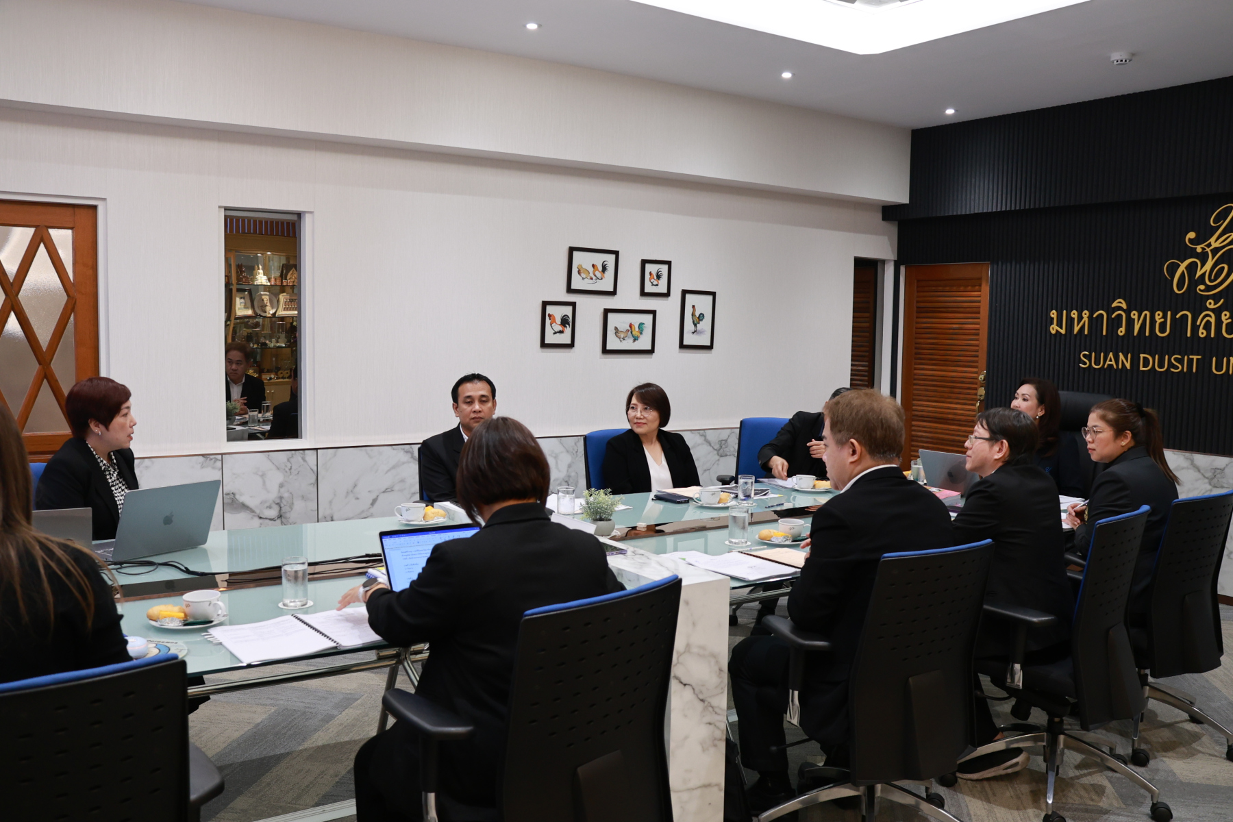 ผู้ช่วยศาสตราจารย์ ดร.พรชณิตว์ แก้วเนตร รองอธิการบดีฝ่ายวิชาการและกิจการต่างประเทศ มหาวิทยาลัย สวนดุสิต เป็นประธานประชุมคณะกรรมการสรรหาคณบดีโรงเรียนกฎหมายและการเมือง ครั้งที่ 3/2568 โดยมีวาระเพื่อพิจารณา อาทิ การแสดงวิสัยทัศน์และพิจารณาเอกสารประกอบของผู้มีสิทธิ์เข้ารับการสรรหาเป็นคณบดีโรงเรียนกฎหมายและการเมือง การพิจารณาคัดเลือกบุคคลผู้มีคุณสมบัติตามประกาศคณะกรรมการคณบดีโรงเรียนกฎหมายและการเมือง เรื่อง ผู้มีสิทธิ์เข้ารับการสรรหาเป็นคณบดีโรงเรียนกฎหมายและการเมือง ประกาศ ณ วันที่ 12 พฤศจิกายน 2568 ฯลฯ การประชุมดังกล่าวจัดขึ้น ณ ห้องประชุม cafe by home