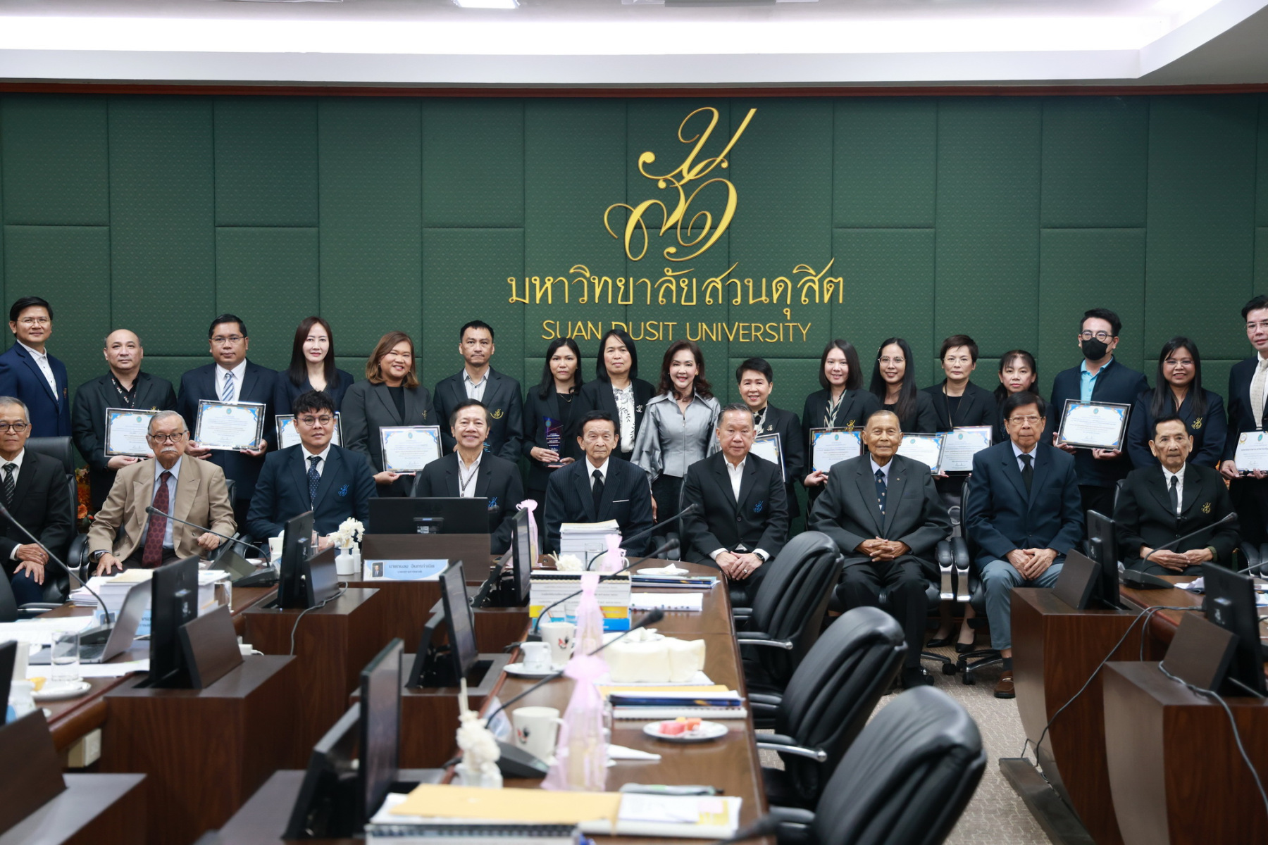 ภายหลังการประชุม สถาบันวิจัยและพัฒนา ได้จัดพิธีรมอบรางวัลนักวิจัยดีเด่น รางวัลผลงานวิจัยดีเด่น และรางวัลผู้สร้างชื่อเสียง ในระดับนานาชาติ ปี พ.ศ.2568 โดยได้รับเกียรติจาก ดร.ถนอม อินทรกำเนิด นายกสภามหาวิทยาลัยสวนดุสิต เป็นประธานการมอบรางวัล