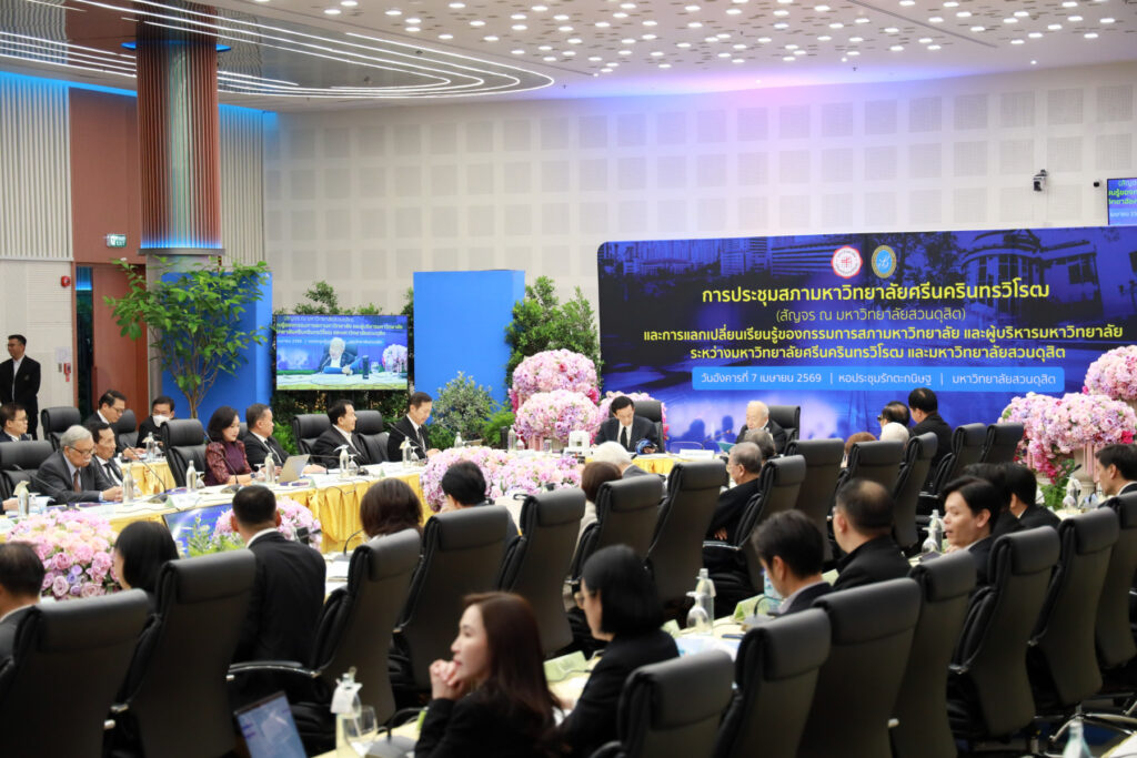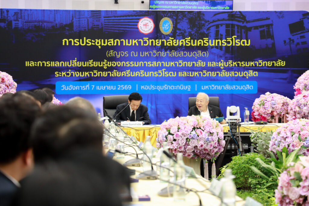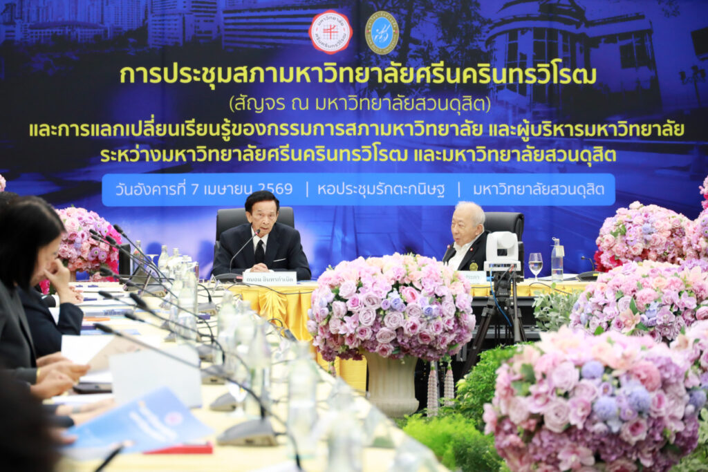 มหาวิทยาลัยสวนดุสิต ต้อนรับสภามหาวิทยาลัยศรีนครินทรวิโรฒ ในโอกาสประชุมสภามหาวิทยาลัยสัญจร พร้อมร่วมแลกเปลี่ยนเรียนรู้การพัฒนาการศึกษา “พลเมืองโลก และ AI” เมื่อวันที่ 7 เมษายน 2569