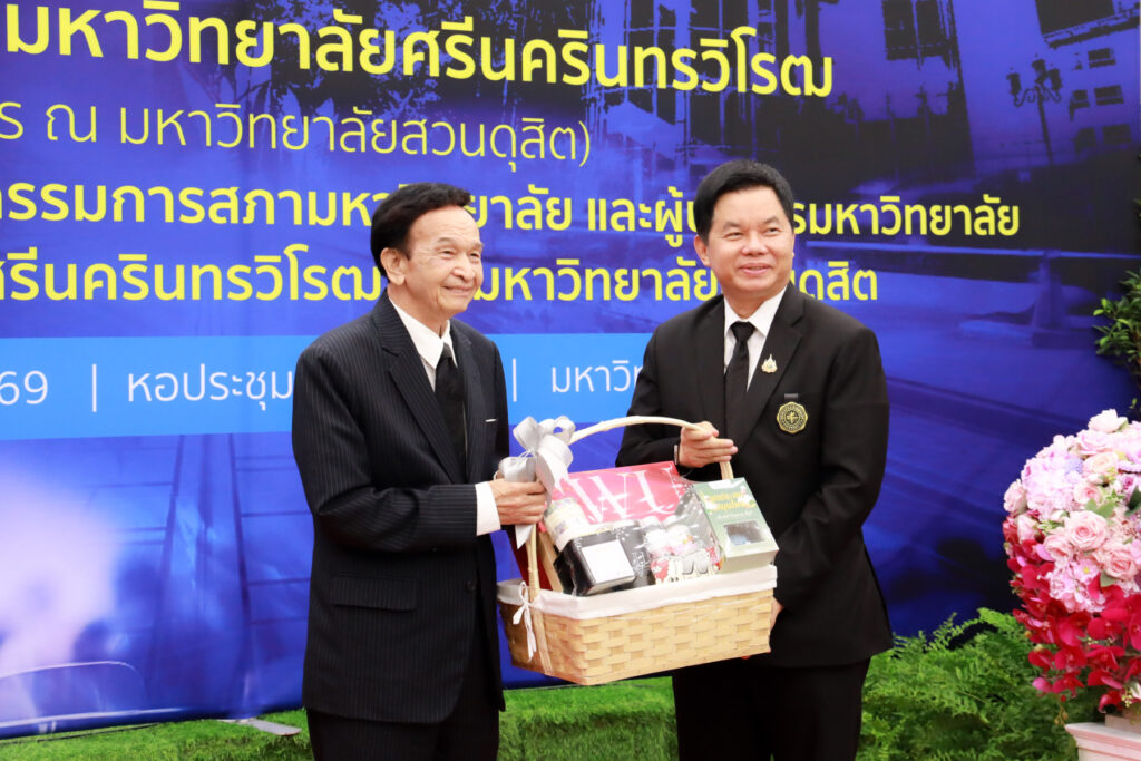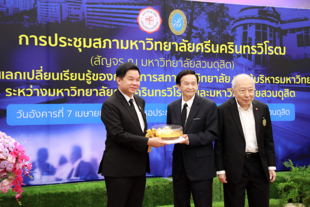 มหาวิทยาลัยสวนดุสิต ต้อนรับสภามหาวิทยาลัยศรีนครินทรวิโรฒ ในโอกาสประชุมสภามหาวิทยาลัย (สัญจร ณ มหาวิทยาลัยสวนดุสิต) พร้อมร่วมแลกเปลี่ยนเรียนรู้การพัฒนาการศึกษาในประเด็น แนวคิดพลเมืองโลก (Global Citizens) และ ปัญญาประดิษฐ์ (Artificial Intelligence: AI) ระหว่างคณะกรรมการสภาและผู้บริหารของทั้งสองสถาบัน ณ หอประชุมรักตะกนิษฐ ชั้น 1 มหาวิทยาลัยสวนดุสิต